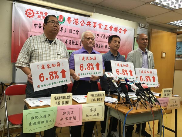 公共事業聯合會轄下4個工會的代表稱,期望明年加薪幅度高於6.8%。