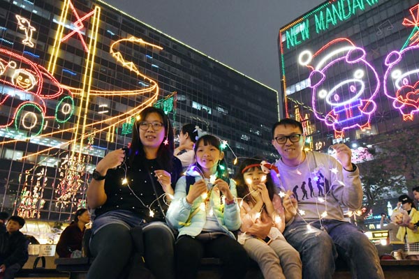大批市民及遊客於平安夜晚上出外慶祝聖誕佳節。有一家大小到尖東欣賞燈飾,拍照留念,甚有節日氣氛。 記者 馮瀚文攝