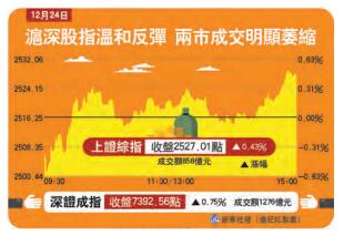 【香港商報網訊】本周首個交易日,A股暫別調整溫和反彈,其中創業板指數表現相對較好,錄得1%以上的漲幅。儘管股指走升,滬深兩市未能放量,分別成交858億元和1276億元,總量降至2134億元,較前一交易日明顯萎縮,顯示投資者心態依然較為謹慎。