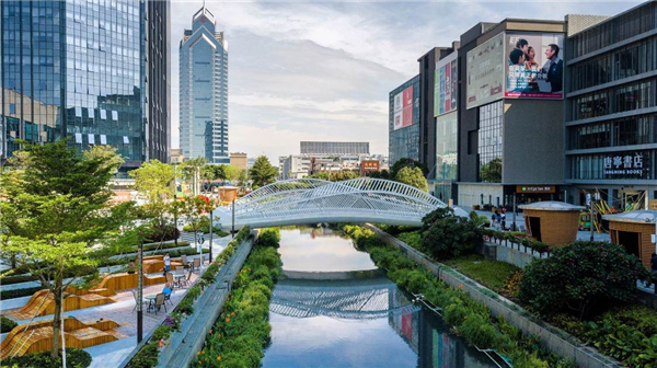 值得一提的是,基盛万科中央公园内曾有一段污染河涌,万科在项目中首创高效微纳米气泡技术,加上生物消淤和植物浮岛技术,并在河涌上特别设置了两台纯氧纳米高效增氧机,大大提升了水生态系统的自我修复与净化能力。治理后的河涌水质化学需氧量降低72%,氨氮含量降低63%,总磷含量降低26%。这段污水涌最终成为当地居民与自然和谐相处的生态绿色景观。这一创新性的环保措施,也是万科荣获本届「广厦奖」的一大因素。
