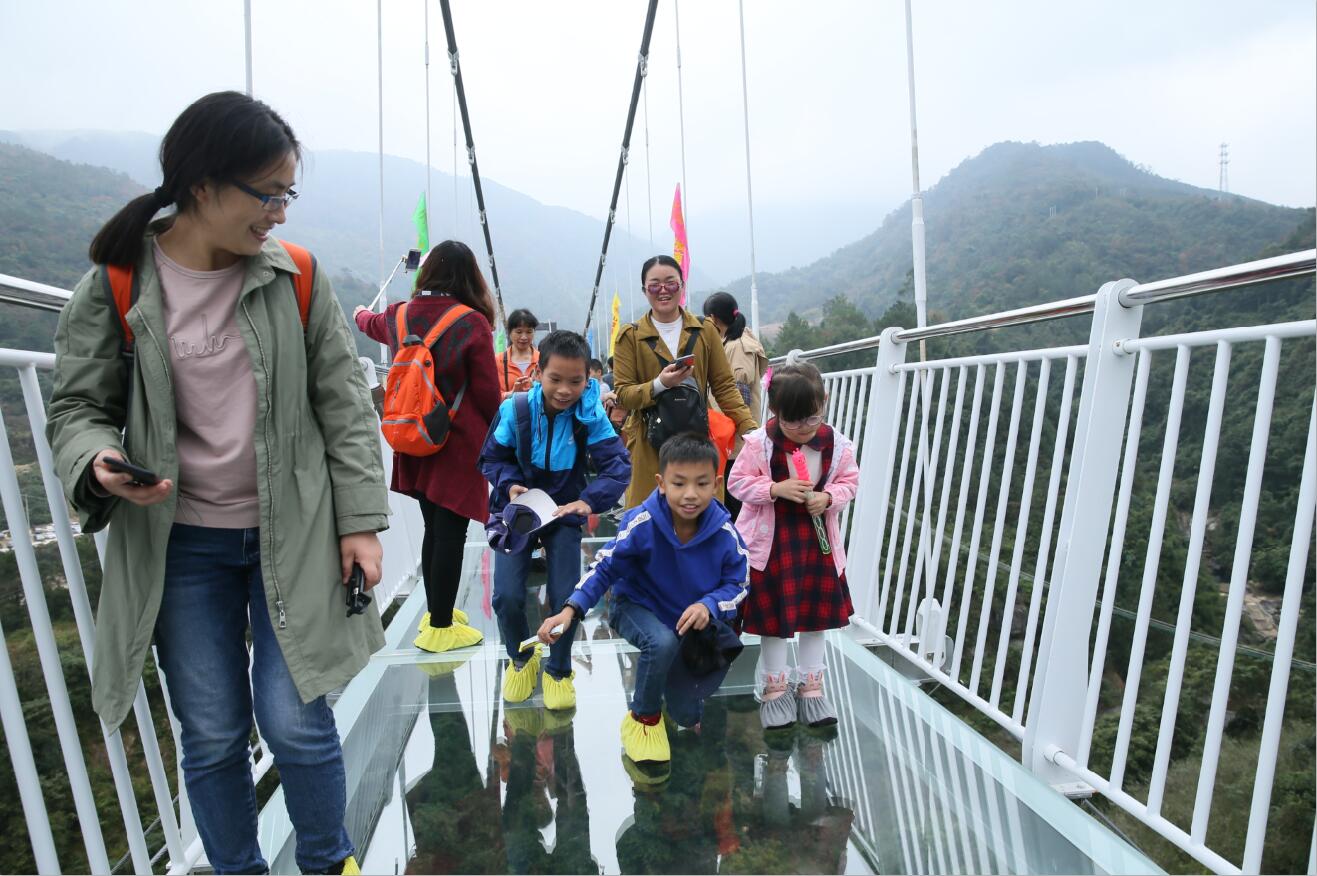 12月23日,广东天露山第七届梅花节暨开业启动仪式在广东天露山旅游度假区隆重举行。在天露山云端玻璃桥,可以亲身体验“漫步云端”的感觉。天露山云端玻璃桥坐落在海拔1251米海拔的天露山中,长188米,垂直落差80米的玻璃桥横跨天露山崖壁山谷,凌空于青翠俊林之上,颇有绝壁凌空之势。