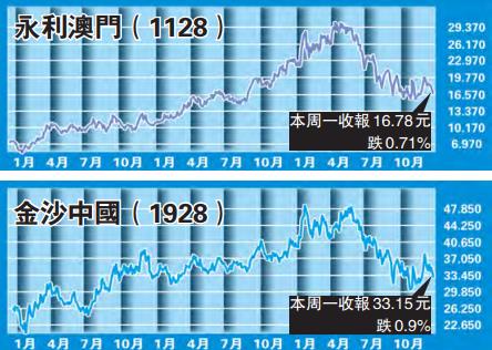 以中場業務為主的金沙中國(1928),其股價於月初受賭收數據刺激,日內一度急升12.5%至38.1元,惟隨後數日回吐,現於35元水平整固。集團第三季收入淨額4.54億美元,按年增13%。總收益淨額21.5億美元,按年同增13%。經調整後物業EBITDA為7.54億美元,按年增長15.8%。