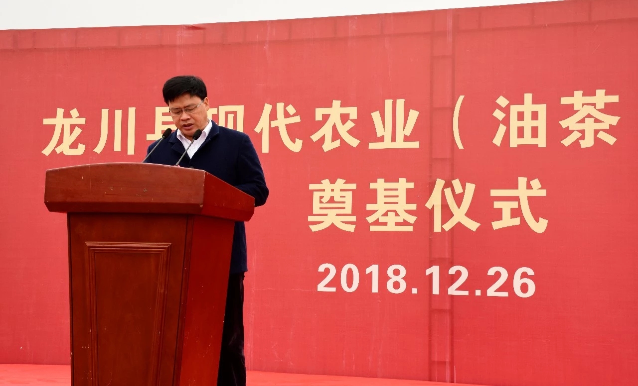 黄添胜致辞表示,现代农业(油茶)产业园核心园区的开工建设,是龙川践行“绿水青山就是金山银山”理念的具体举措,是龙川贯彻落实市委提出把河源建设成为全省绿色发展的示范区、融入粤港澳大湾区的生态排头兵,走出生态河源、现代河源相得益彰的发展新路的生动实践,对龙川创建全省乡村振兴示范县、打赢脱贫攻坚战具有十分重要的意义。他要求,全县各级各部门要深入学习贯彻习近平总书记视察广东重要讲话精神,以高度的责任感和强烈的事业心共同推进现代农业(油茶)产业园建设,擦亮龙川“全国油茶示范县”的金字招牌;县有关单位及乡镇要严格按照省农业农村厅出台的资金管理方案和龙川制定的资金使用方案,加快项目审核和财政资金拨付,切实加强对资金的监管指导,确保省级财政资金使用高效、安全;要强化主动服务意识,为实施主体提供优质高效的服务,积极协调解决现代农业(油茶)产业园建设中遇到的困难和问题,全力营造良好的外部环境,推动产业园早日建成投产、早日产生效益;各实施主体要加大资金投入力度,切实保障企业自筹配套资金及时到位,确保现代农业(油茶)产业园建设顺利推进。