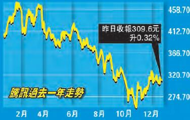 中宣部版權局副局長馮士新上周曾透露,首批部分遊戲已經完成審核,並指正在抓緊核發版號,消除內地停止審批遊戲發行之一大不明朗因素,騰訊之遊戲收入亦有望回復增長。但在重啟審批程序後,獲發版號的遊戲內容料已遭大幅修改,玩家對修改後的遊戲之參與的興趣如何?騰訊將有多少隻遊戲獲批?這仍須有待觀察,所以騰訊將不會急升,但可在300元附近買入,留意大巿首季下跌壓力大,宜分段買入。