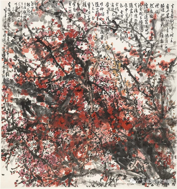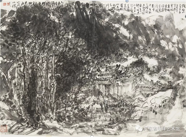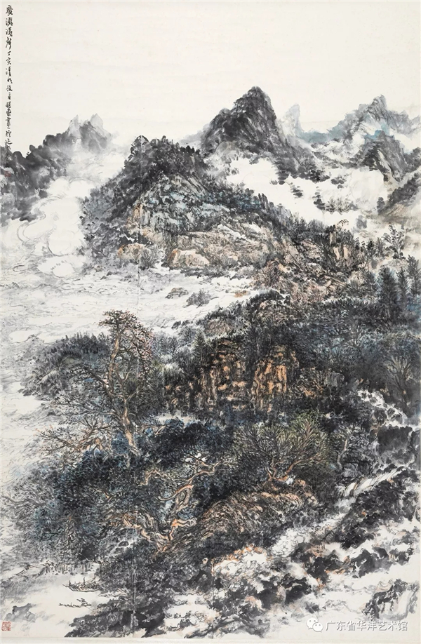 李照东的艺术才华气质、他在山水画、花鸟画和书法方面的成就,早为画界所知。做为中国画家,照东深知中华文化的崇高价值和担当的使命,在现当代中国画的定位必定是对于传统精神有所坚守有所敬畏,而表达方式、图像面貌有所新变有所发展。多年来,照东的山水画倾向厚重繁密风格一路,毕竟他身处广东,山川植被浓郁丰富,故其画风既有岭南生动写实特点,更近黄宾虹注重笔墨审美、浑厚华滋一派。照东自幼娴习书法,精于用笔,顿挫飞扬,体会很深,对其领悟中国画的笔墨精神极有助力,黄宾虹论画最重笔墨,有言:“画之章法,重在笔墨。章法屡改,笔墨不移。不移者精神,而屡改者面貌”,此论十分精辟。自古至今,画之章法面貌,代有不同,而笔墨精神从未消失。此外,“外师造化”“师法自然”是画家灵感源泉,亦是必守原则,据此二端,激发创作个性,则中国画生命将永无穷尽。观照东新作,墨彩缤纷,视觉张力更形恣肆磅礴,而画面之中,溪谷幽深,流水潺湲,屋宇聚散,情趣盎然,足见画家章法安排,深得“造境”之妙。照东这次个人画展,题为“妙合化权”出自宋代黄修复《益州名画录》:“大凡画艺,应物象形,其天机迥高,思与神合,创意立体,妙合化权”,我理解其大意是神思与物象的协调、即主观创造与自然物象的妙合无碍而变化通神。当然,这也是中国画家们追求的至高境界。