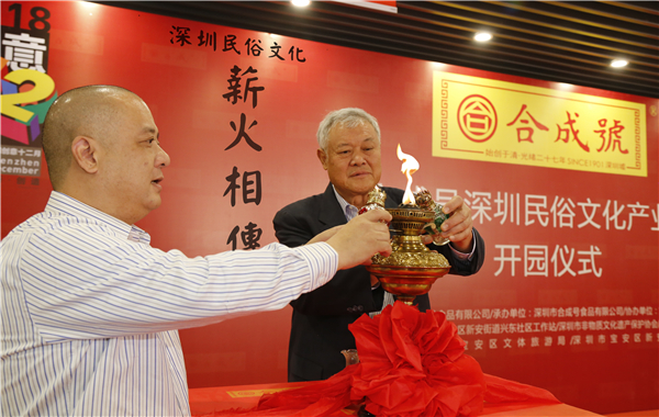 【香港商报网讯】记者王娜、王晓蕾报道:百年合成号是深圳民俗文化的家业。创意十二月期间,百年合成号启动开园仪式,这也是深圳首个以本土民俗文化为主题的产业园。在28日的开园“点灯”仪式上,合成号品牌第五代传承人从嘉宾手中接过火种保存,代表着本地优秀传统文化薪火相传,生生不息。活动现场还举行了签约仪式,以文化园作为平台,引进电商、设计、深圳老字号、广东老字号等企业,实现文化共享,民俗文化产业化的发展。