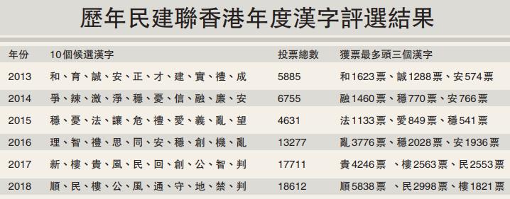 【香港商報网訊】民建聯昨日公布2018年香港年度漢字評選結果,「順」字以最高票數當選。
