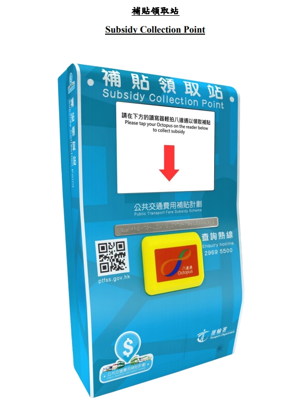 市民可由2月16起,每月的16日用八達通,在此藍色領取站領取補貼。