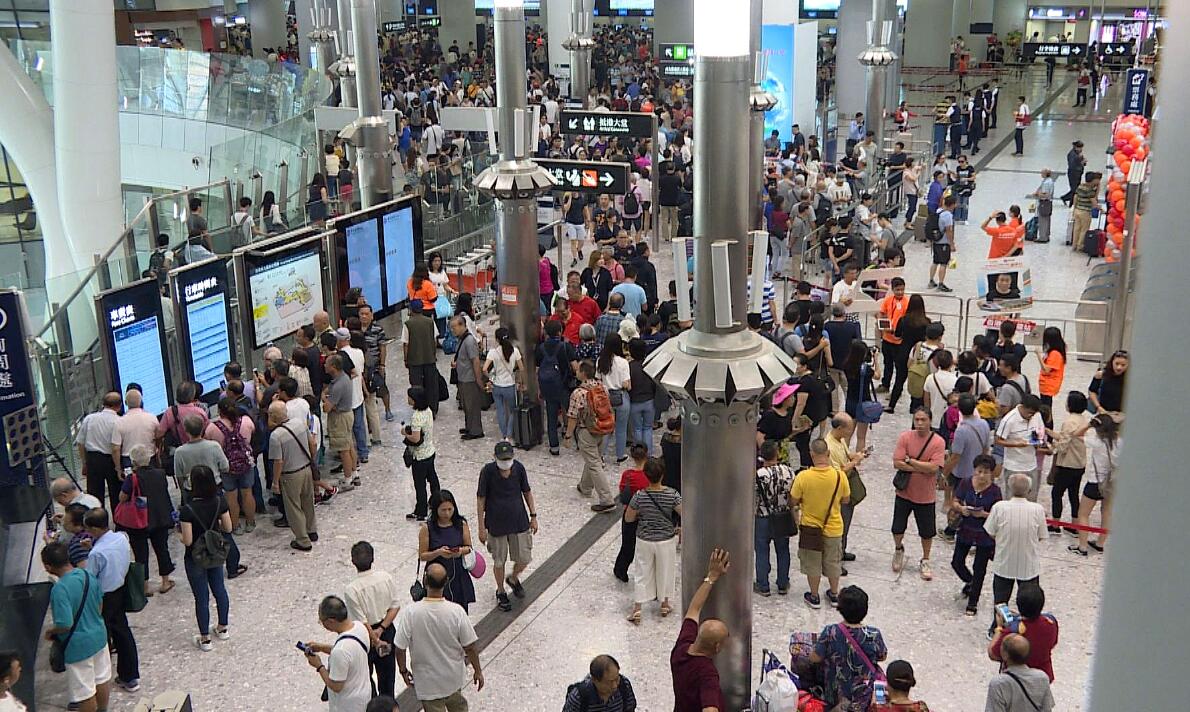 西九龍站大批旅客受列車延誤影響。