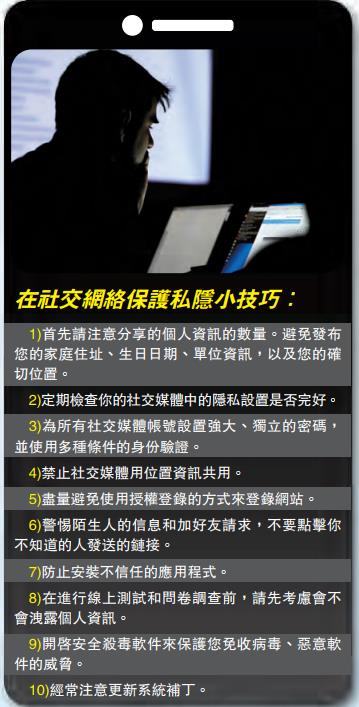 1)首先請注意分享的個人資訊的數量。避免發布您的家庭住址、生日日期、單位資訊,以及您的確切位置。