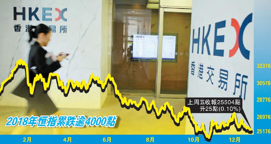至12月28日,恒指今年累跌4415點或14.8%;若由1月高位33484點起計,更累跌7980點,或23.8%。除非恒指今日爆升,否則全年計仍要跌一成以上,成為繼2015年「大時代」以後另一年跌市。