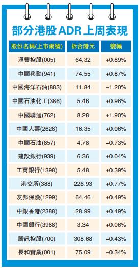 ADR方面大多造好,滙豐控股(005)ADR折合港元收報64.32元,跌0.89%;中國移動(941)ADR折合港元收報74.55元,升0.87%;但中海油(883)則跌1.2%,折合港元收報11.84元。港股ADR比例指數周五收報25537點,升58點。若跟足ADR走勢,恒指今早應可高開,並可以升市結束2018年。