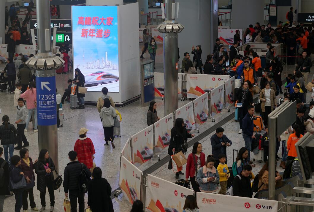 元旦期間,香港高鐵西九龍站迎來大批出入境旅客。 中新社