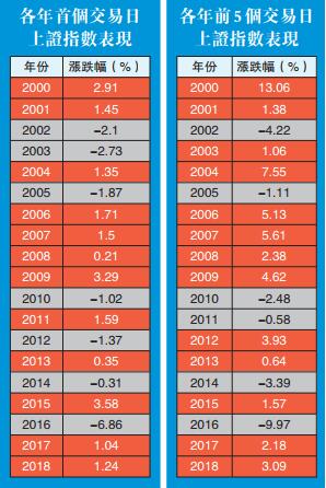 歷史數據顯示,21世紀以來已過的19個完整年度中,上證指數元旦後5個交易日出現上漲的年份有13個,上漲概率達68.42%,接近七成;從元旦後首個交易日上證指數的表現來看,上述19個年度中,有12個年度出現上漲,上漲概率也超過六成。