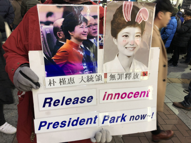 12月22日,韩国保守派民众集会呼吁释放朴槿惠。(韩国《每日新闻》)