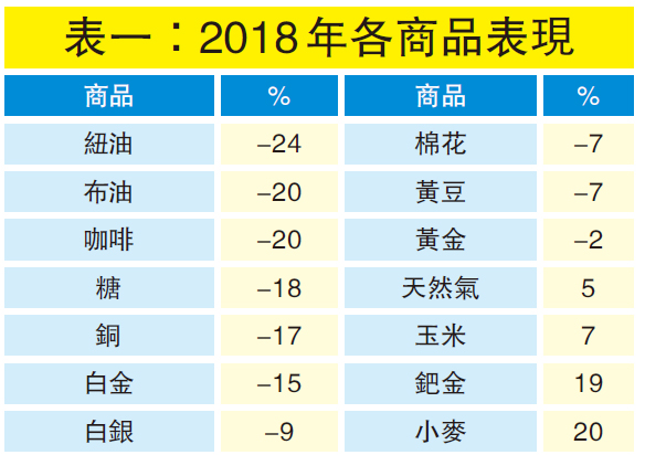 首先回顧一下各商品於去年的表現。表一可見,原油表現最差,特朗普原本宣布制裁伊朗但最後多個國家獲得豁免,加上美國原油庫存繼續上升,油價自10月開展跌浪。在全球經濟增長面臨放緩壓力下,料原油需求將會回落,油價繼續在低位近45美元徘徊。農作物價格普遍優於其他商品,其中小麥受惠於澳洲東部地區乾旱而去年價格上升兩成,估計短時間內難以填補市場供應,料其價格將在高位徘徊。至於金屬價格表現普遍偏軟,但隨汽車催化轉換器需求上升,利好鈀金價格升幅也高達兩成,那麼其他金屬今年能追上其升幅麼?