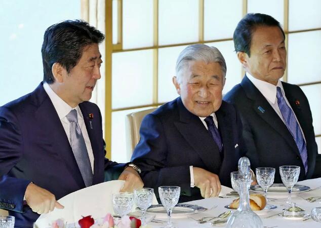 ▲明仁天皇和日本首相安倍晋三