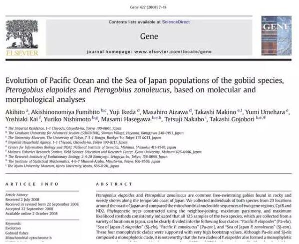 自1963 年以来,他在《日本鱼类学刊》和《基因》等各类学术刊物上发表了38 篇经过了同行评议的科学论文,专著3 册。