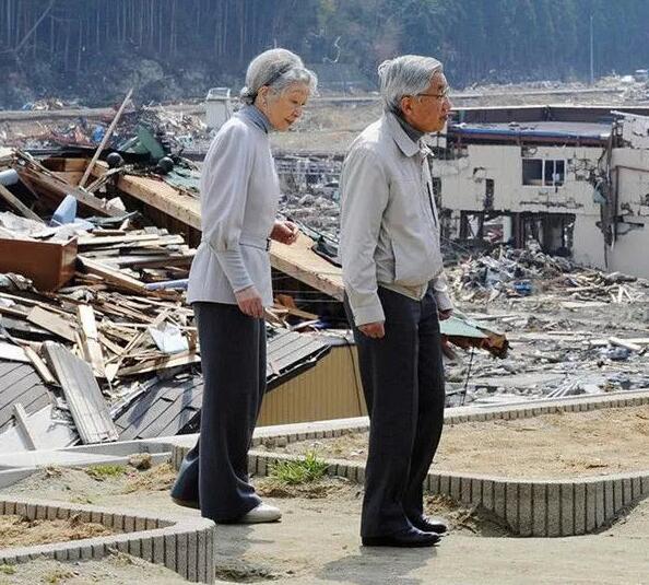▲2011年4月27日,明仁天皇夫妇视察地震灾区悼唁死难者。