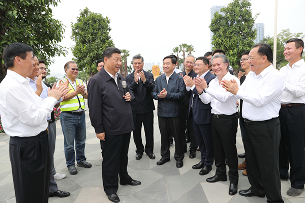 去年10月24日視察深圳時,習近平又來到廣東自由貿易試驗區深圳前海蛇口片區,實地察看前海開發情況。習近平說:「發展這麼快,變成這個樣子。雖然這是意料之中的事,但是看了以後仍然感覺到很開心。過去這一片都是荒涼的,說明我們這個前海的模式還是可行的。」
