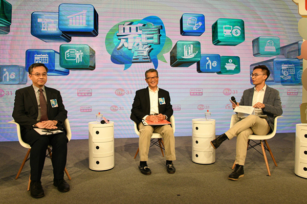 陳茂波早上出席香港電台舉辦的《眾言堂-財政預算案諮詢》論壇,聯同香港浸會大學財務及決策學系副教授麥萃才和香港中文大學劉佐德全球經濟及金融研究所常務所長莊太量教授,跟逾百位現場市民直接交流,讓特區政府施政團隊集思廣益,協助制訂2019至20年度財政預算案。