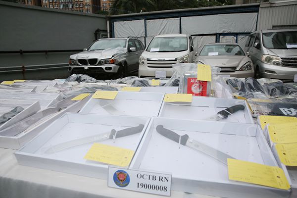 【香港商報网訊】記者馮仁樂報道:太子道東1月5日光天化日下上演「追車斬人」案,震怒警方高層。警方有組織罪案及三合會調查科(俗稱O記)及東九龍反黑組根據情報分頭採取行動,昨日凌晨在九龍及新界多處閃電拘捕9名刀手及3名黑幫骨幹。行動中檢獲4部私家車、包括「防暴盾牌」在內的大批利刀、鐵通及鐵錘等武器;更在車上檢獲電油、布碎,相信有人正策劃一場廝殺,並計劃犯案後燒車毀證。初步調查顯示,案件與元旦夜大角咀海庭道發生的追車斬人案有關,涉及黑幫新義安同門內訌的延續。由於調查及行動仍在進行中,不排除再有其他人被捕。