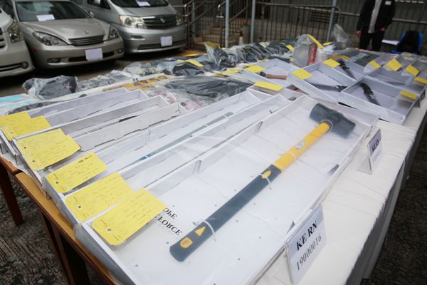 行動中,警方在三輛私家車內檢獲一批攻擊性武器及與斬人案有關證物,包括4套假車牌、7把牛肉刀,當中4把未開封;一柄大鐵錘、一個防暴盾牌、一罐電油及大量布碎。初步相信疑犯計劃在犯案後會放火燒車毀滅證據;同時亦檢獲5件同款黑色外套、9頂棒球帽、口罩及手套等;並在被捕人士身上檢獲涉案3車的車匙及3萬元現金。