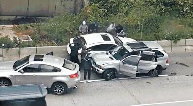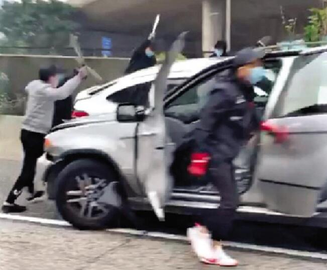 上周六太子道閘車斬人案,事發時多名刀手從寶馬車跳出,襲擊被壓向路中石壆的平治車上2人。