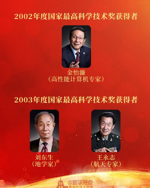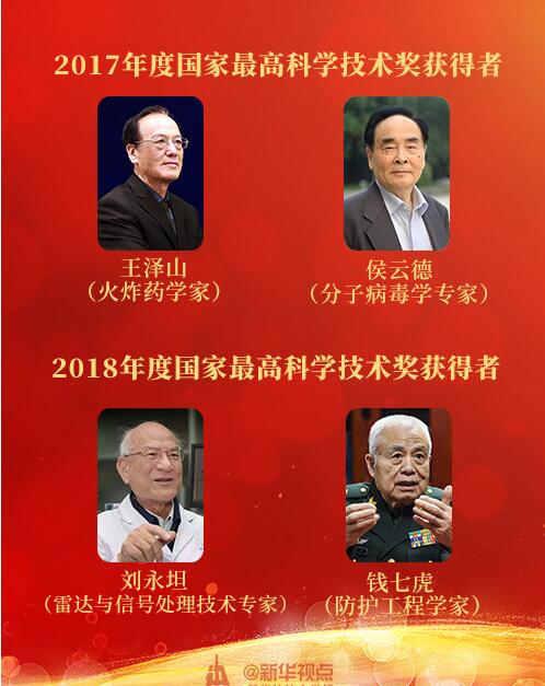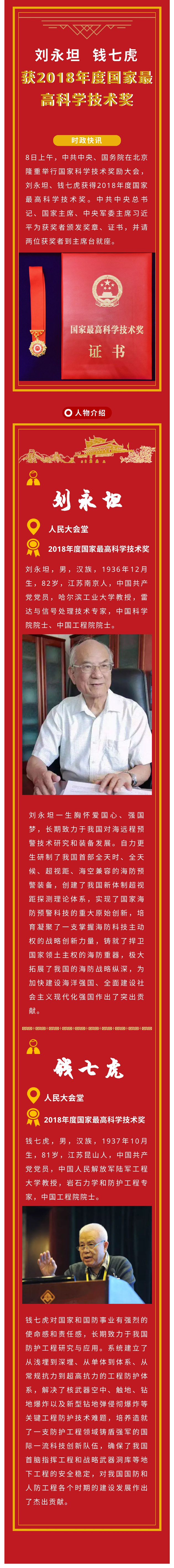刘永坦,82岁,自力更生研制了中国首部全天时、全天候、超视距、海空兼容的海防预警装备,创建了中国新体制超视距探测理论体系,实现了国家海防预警科技的重大原始创新;钱七虎,81岁,系统建立了从浅埋到深埋、从单体到体系、从常规抗力到超高抗力的工程防护体系,解决了核武器空中、触地、钻地爆炸以及新型钻地弹侵彻爆炸等关键工程防护技术难题。