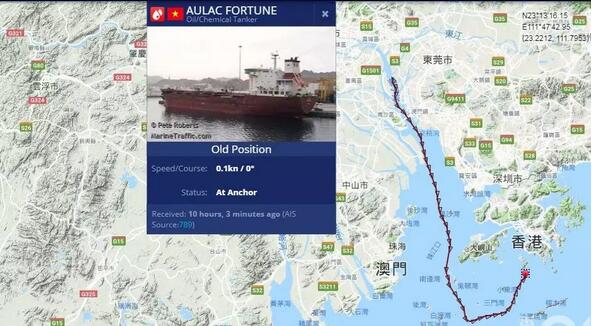 據資料顯示,肇事運油輪名為「Aulac Fortune」,在越南胡志明市註冊,排水量11290噸,船身長144米、闊22.6米,該船於2010年落水,之前曾先後改名「Samho Freedom」及 「Sea Ruby」,再易手後改名「Aulac Fortune」至今。運油輪在本月6日及7日逗留在東莞,7日晚上啟程來港,今日凌晨2時許抵達南丫島危險貨物碇泊處。現場消息稱,肇事運油 輪上共25名越南籍船員,今日上午1艘油躉船駛至為運油輪入油,根據業界程序,入油時運油輪會派1名船員登上油躉船,而油躉船亦會派1名船員登上運油輪。