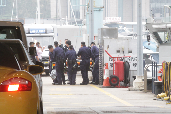南丫島以南海面發生運油輪大火,不幸當場死亡的船員被送返岸上,其遺體稍後轉送殮房處理。(記者區天海攝)