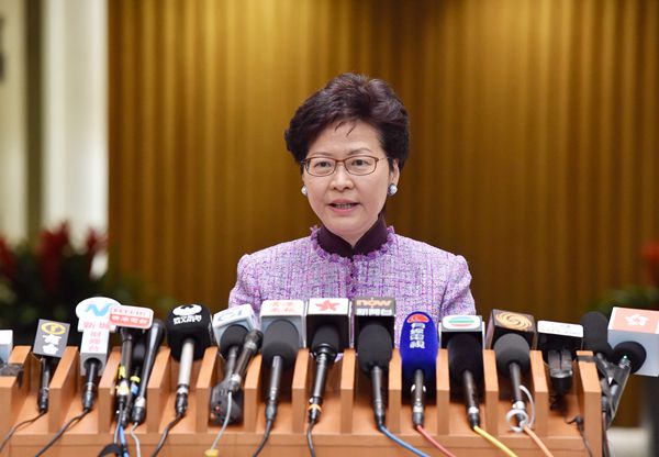 行政長官林鄭月娥昨出席行政會議前會見傳媒。 中通社