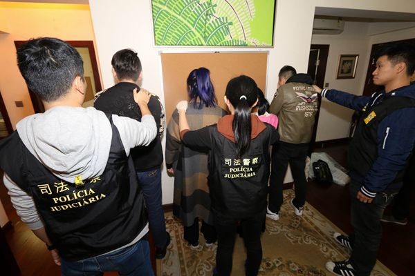 時至今年1月7日,兩地警方認為收網時機成熟,同時採取行動。司警在路?8個豪宅單位內拘捕18男3女,其中1名姓徐(44歲)無業男子為集團主腦;7男3女為「上線」骨幹成員;其餘10男為「下線」成員,有酒樓雜工、商人、司機、售貨員,當中有五人,以虛假資料取得外僱赴澳。