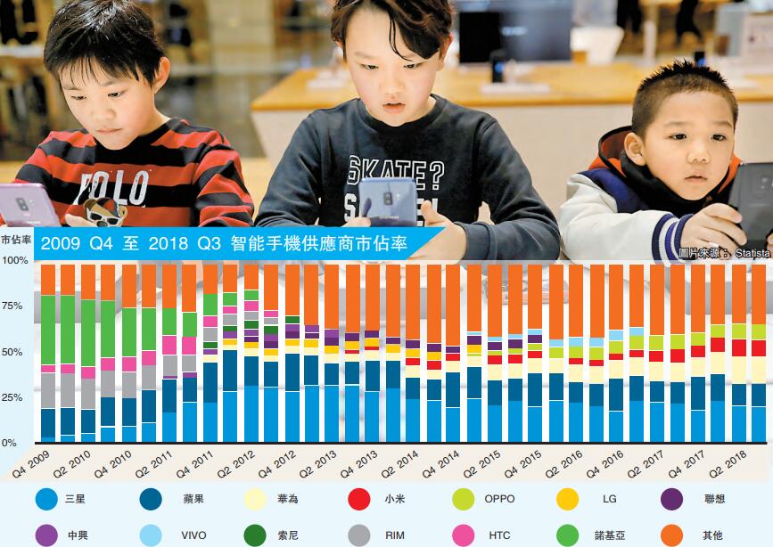 有分析師認為,中國需求低迷將進一步拖累三星晶片的銷量。另外,儘管三星目前依然佔據全球智能手機市場的最大份額,但在中國競爭對手的追趕下,從2018年一季度開始,三星的市場份額呈不斷縮減趨勢。