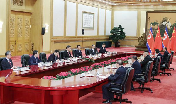 1月8日,中共中央总书记、国家主席习近平同当日抵京对中国进行访问的朝鲜劳动党委员长、国务委员会委员长金正恩举行会谈。