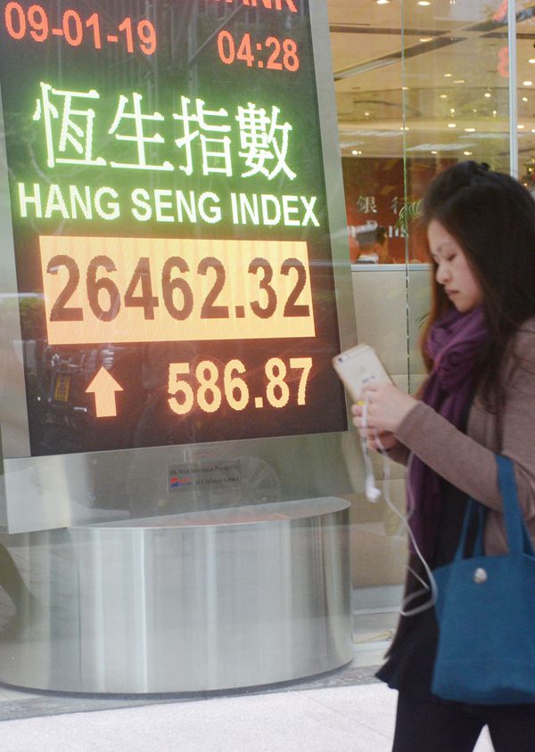 至於香港股市,昨日已是連續第四天上揚。投資人對中美貿易談判能敲定一紙協議、終止雙方貿易戰,越來越抱持希望。當天,港股恒生指數收盤大漲586.87點,漲幅達2.27%,收於26462點,重返兩萬六關口,突破百天線(26427點),並創去年12月5日以來新高。恒指四日累升1397點或5.6%,整體表現堪稱亢奮。