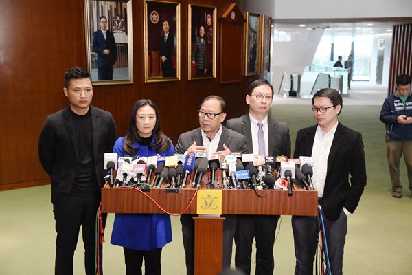民建聯多位立法會議員會見傳媒,不滿政府將政策綑綁於預算案中。 記者 崔俊良攝
