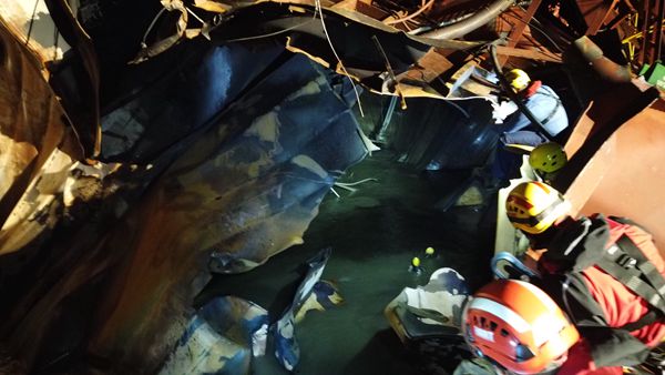 消防高級消防隊長(潛水組)洪誠佑指,船艙內水深約2至3米,內裏混合油污和爆炸燃燒後的碎片,水中能見度是零,蛙人只可靠觸摸進行搜索,行動要十分謹慎,每次派兩人一同行動,並有後備蛙人戒備,配備循環式潛水器,應付進一步的惡劣環境。