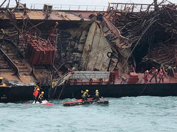 【香港商報网訊】記者區天海報道:越南駐冊運油輪本周二(8日)在南丫島對開約1海里發生的3級大火,消防及海事處救援人員昨日繼續在現場搜索失蹤者。派出高空拯救專隊架設繩索系統,登上傾側的油輪,在海事處驗船主任監察下,蛙人進入船艙,但至今仍未尋獲2名失蹤的越南籍船員。消防處稱,由於船艙內有油污及爆炸造成的金屬碎片,令消防蛙人行動倍增困難。