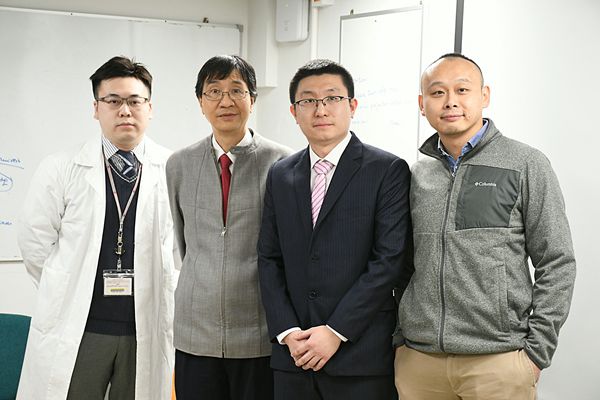 袁國勇(左二)與研究團隊,研發新型廣譜抗毒藥物「AM580」,可治療多種流行病毒病。 記者 馮瀚文攝