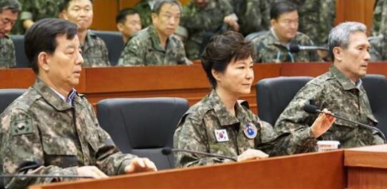 朴槿惠与时任防长韩民求(左)