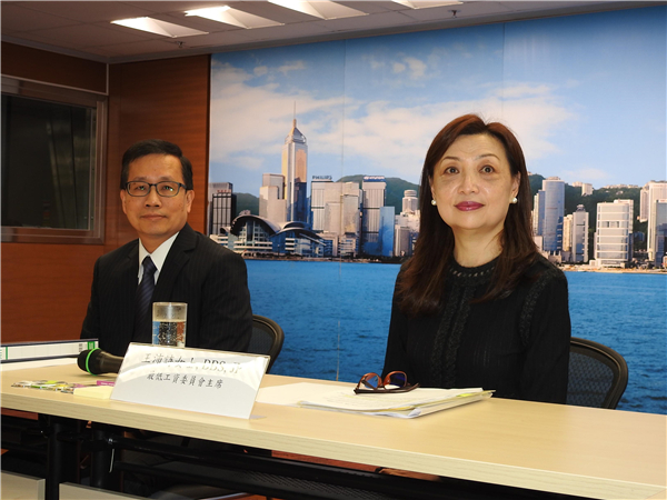 特區政府昨日公布,行政長官會同行政會議已接納最低工資委員會的建議,將最低工資水平由每小時34.5元升至37.5元,增幅為8.7%。右为最低工资委员会主席王沛诗,左为委员会委员欧锡熊。