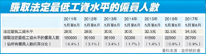 【香港商報网訊】記者林駿強報道:特區政府昨日公布,行政長官會同行政會議已接納最低工資委員會的建議,將最低工資水平由每小時34.5元升至37.5元,增幅為8.7%。《2019年最低工資條例(修訂附表3)公告》將於下星期五刊憲,並於本月23日提交立法會;如在立法會通過,修訂的最低工資水平將會於5月1日實施。最低工資委員會(委員會)預估,至少6.15萬人受惠。