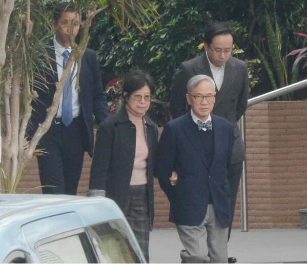 曾蔭權今早出獄,由妻子陪同離開醫院。