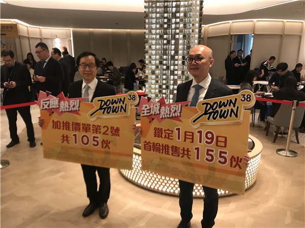 新盤大戰愈演愈烈,除了大埔之外,戰雲密布的還有啟德區。新地(016)馬頭角新盤Downtown 38加推105伙,折實呎價1.76萬至2.09萬元,周六進行首輪155伙銷售。新地代理副總經理唐錦江指,項目周四截收登記,每客限購2伙,開售的155伙總值逾10億元。