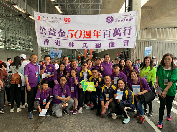 【香港商報网訊】記者王抒玉報道:香港林氏總商會執行副會長兼主席林天意、執行副會長林曉斌、副會長林澤華、林華、林偉生等聯同該會成員組隊日前參加公益金50周年百萬行,香港林氏總商會創會會長林世強任是次百萬行的聯席主席,更大力支持公益金為資助香港福利服務所作的貢獻。行政長官林鄭月娥、中聯辦主任王志民、公益金會長李業廣及中銀香港副董事長兼總裁高迎欣擔任開步典禮主禮嘉賓。