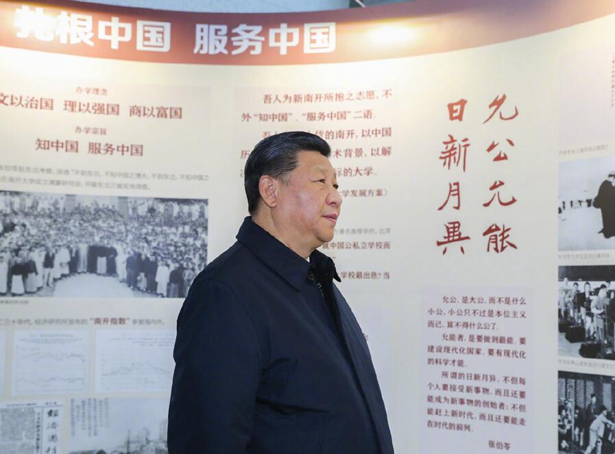 17日上午,习近平来到天津考察调研。在南开大学,他参观了百年校史主题展览,与部分院士、专家和中青年师生代表互动交流,察看了化学学院和元素有机化学国家重点实验室,详细了解南开大学历史沿革、学科建设、人才队伍、科研创新等情况。