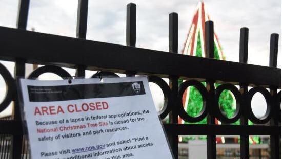 当地时间2018年12月23日,受政府“关门”影响,位于白宫前的国家圣诞树区域因“政府拨款缺失”关闭。中新社