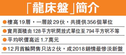 「龍床盤」廁所面積約24方呎,堪稱「麻雀雖小,五臟俱全」,提供坐便、洗臉盆及站式洗浴間。扣除廁所面積後,全屋可以用到的實用面積只有約88方呎,包括客廳餐廳及開放式廚房。該盤更成為當時網民熱話,有人認為這個盤「唔人道」,但亦有人覺得「價錢平,大家搶住上」。