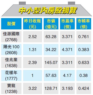 首先要指出的是,暴跌之前的佳源股價已偏高。佳源昨日收報2.52元,跌幅80.61%。跌後的市盈率約3.371倍,按資產淨值3.313元計算,市帳率約0.761倍。對比其他中小型內房,無論是市盈率還是市帳率均未見特別吸引(詳見表),尤其市帳率,更是遠遠高出昨日同樣暴跌的陽光100(2608)。